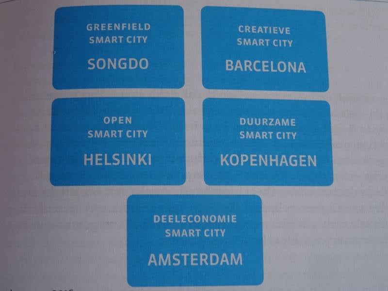 Studies over smart cities vermelden steevast Kopenhagen. De Deense stad krijgt altijd goede punten, niet alleen als slimme stad, maar ook als ecologische stad en als fietsstad. Scandinavische buur Helsinki scoort ook goed. Barcelona is een derde voorbeeld, maar sinds de vorige gemeenteraadsverkiezingen is er een indignado burgemeester aan de macht die de smart cities projecten niet meer steunt.